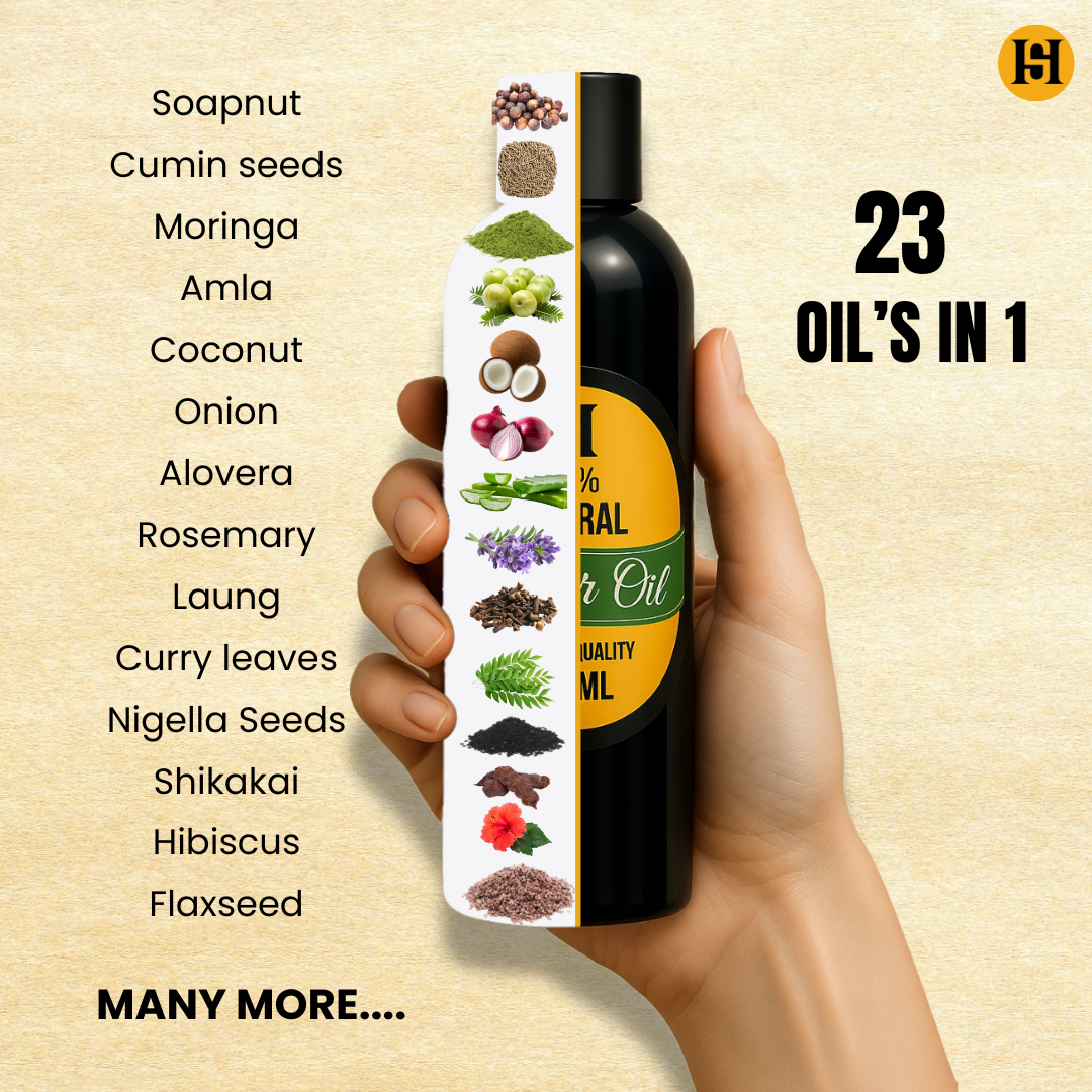 Our hair oil is crafted from natural, nourishing ingredients like herbal extracts and essential oils designed to reduce hair fall, add shine, and promote hair growth. It’s free from chemicals and safe for regular use.